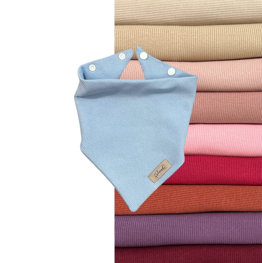 Trójkątna niemowlęca apaszka zapinana na dwie napy z możliwością regulacji obwodu.