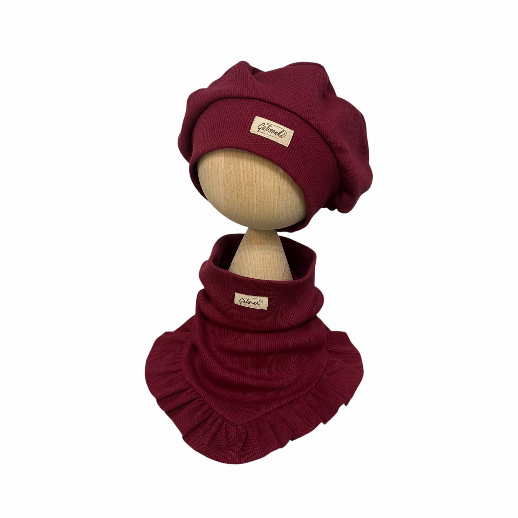 Beret + komino chusta z falbanką | dla dziewczynki | zestaw wiosenny | Bordo