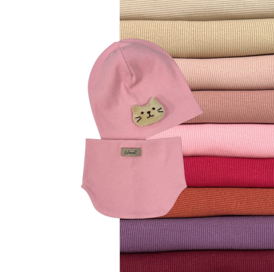 Komplet z wysokiej jakości dzianiny prążkowanej polskiego producenta. Certyfikat oeko-tex.
