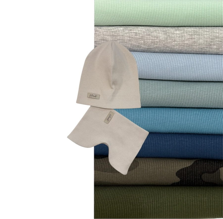 Komplet z wysokiej jakości dzianiny prążkowanej polskiego producenta. Certyfikat oeko-tex.