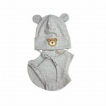 Zestaw jesienny, dwuwarstwowy dla dzieci: Czapka + Komino-golf z dzianiny prążkowanej.