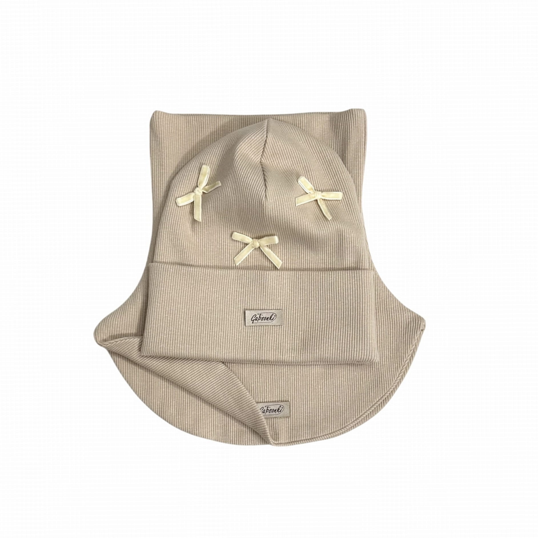 Czapka z kokardkami | komino-golf | zestaw jesienny | dziewczęcy | Beż