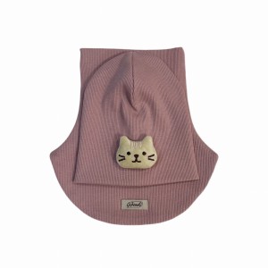 Czapka z kotkiem | komino-golf | zestaw jesienny | dziewczęcy | antyczny róż