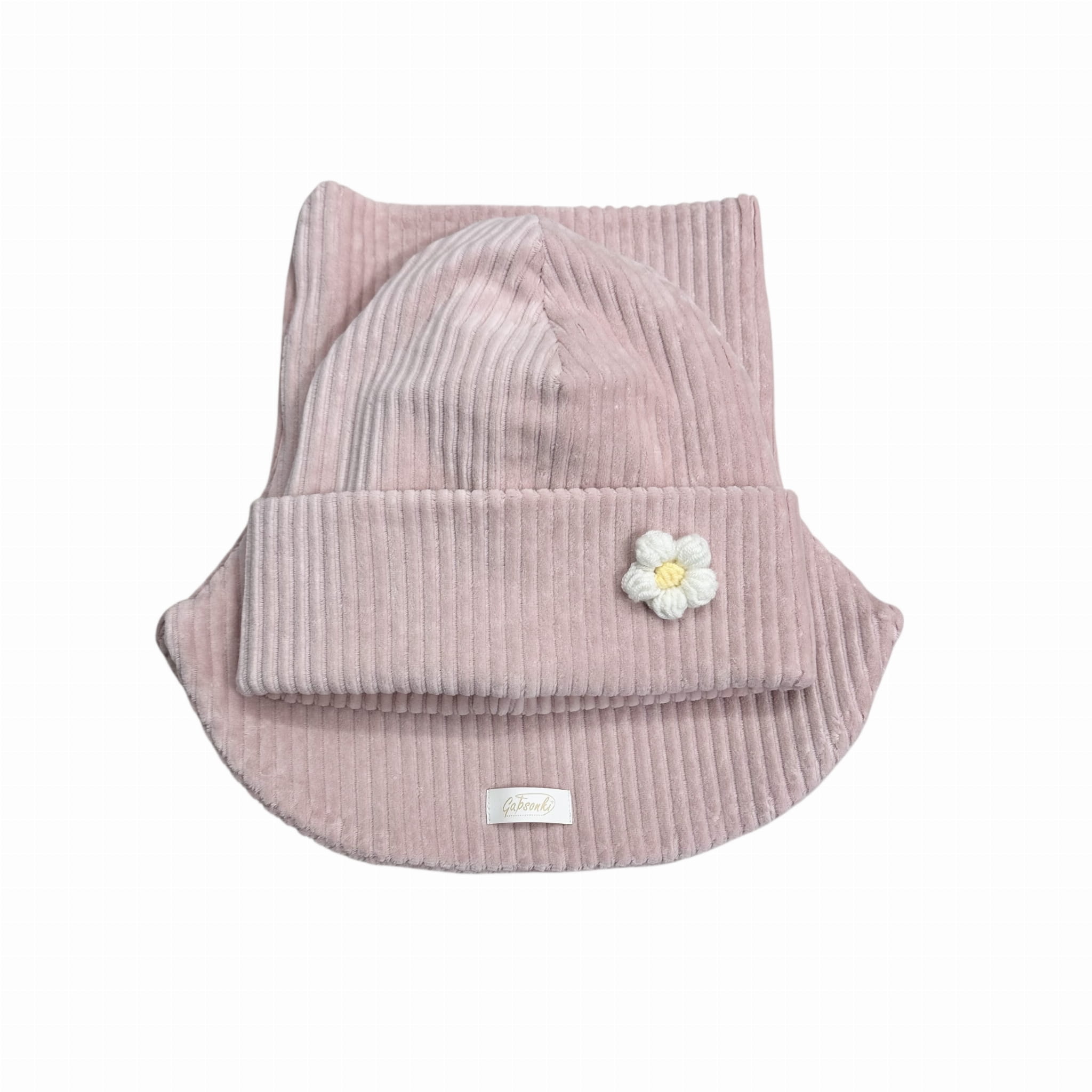 Czapka z kwiatuszkiem | komino- golf | zestaw zimowy | dla dziewczynki | Róż