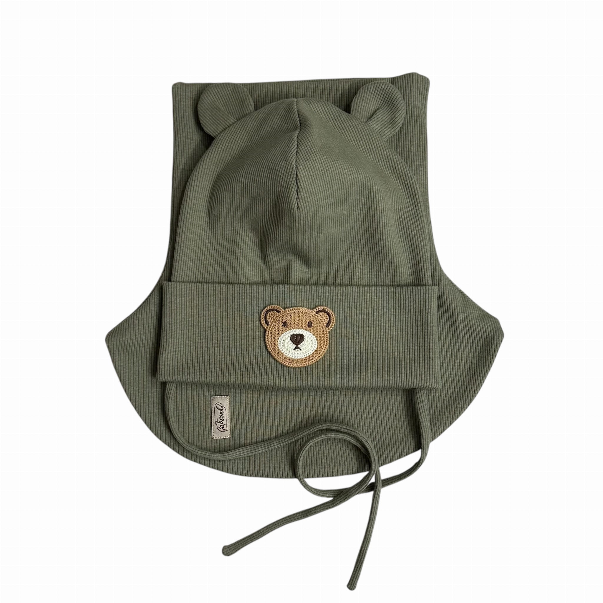 Czapka z misiem | komino-golf | zestaw jesienny | chłopięcy | Oliwka