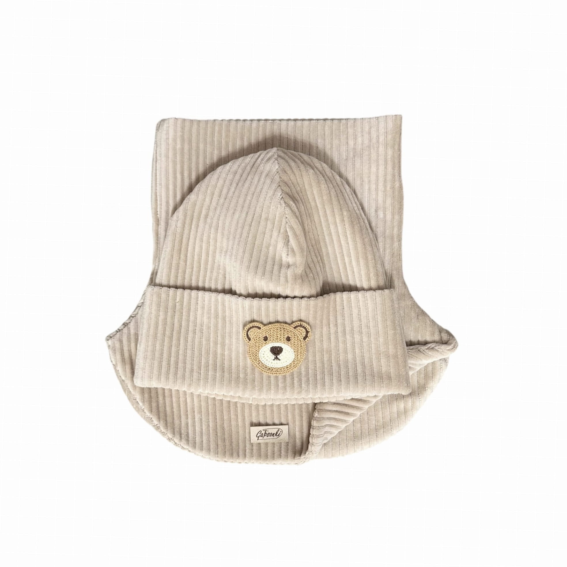 Czapka z misiem | komino-golf | zestaw zimowy | dla chłopca | Beż