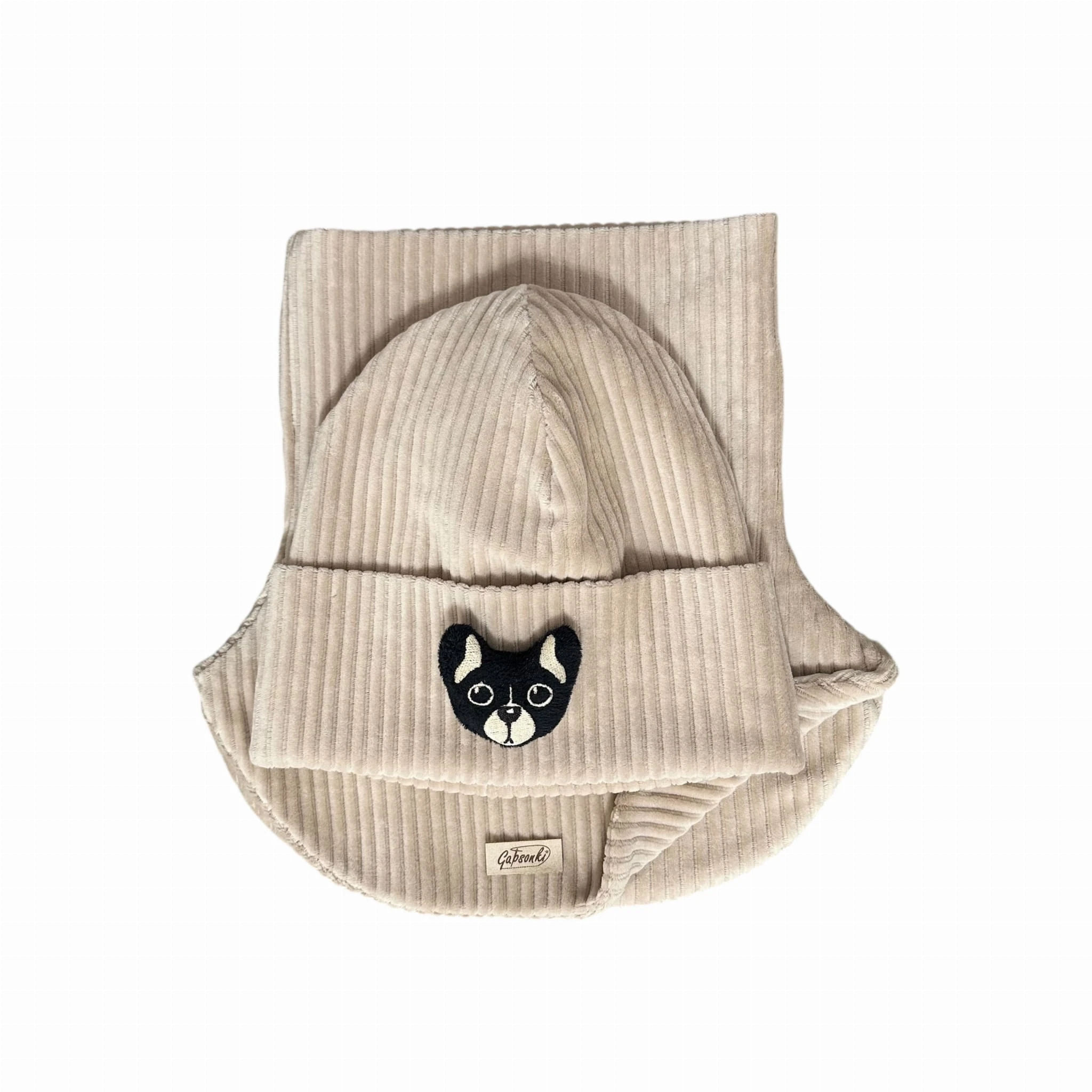 Czapka z pieskiem | komino-golf | zestaw zimowy | dla chłopca i dziewczynki | Beż