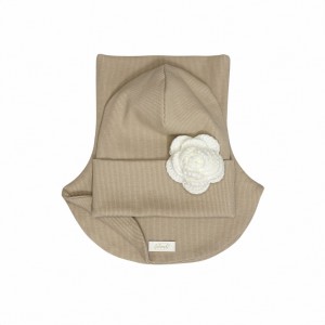 Czapka z różą | komino-golf | zestaw jesienny | dziewczęcy | Beż