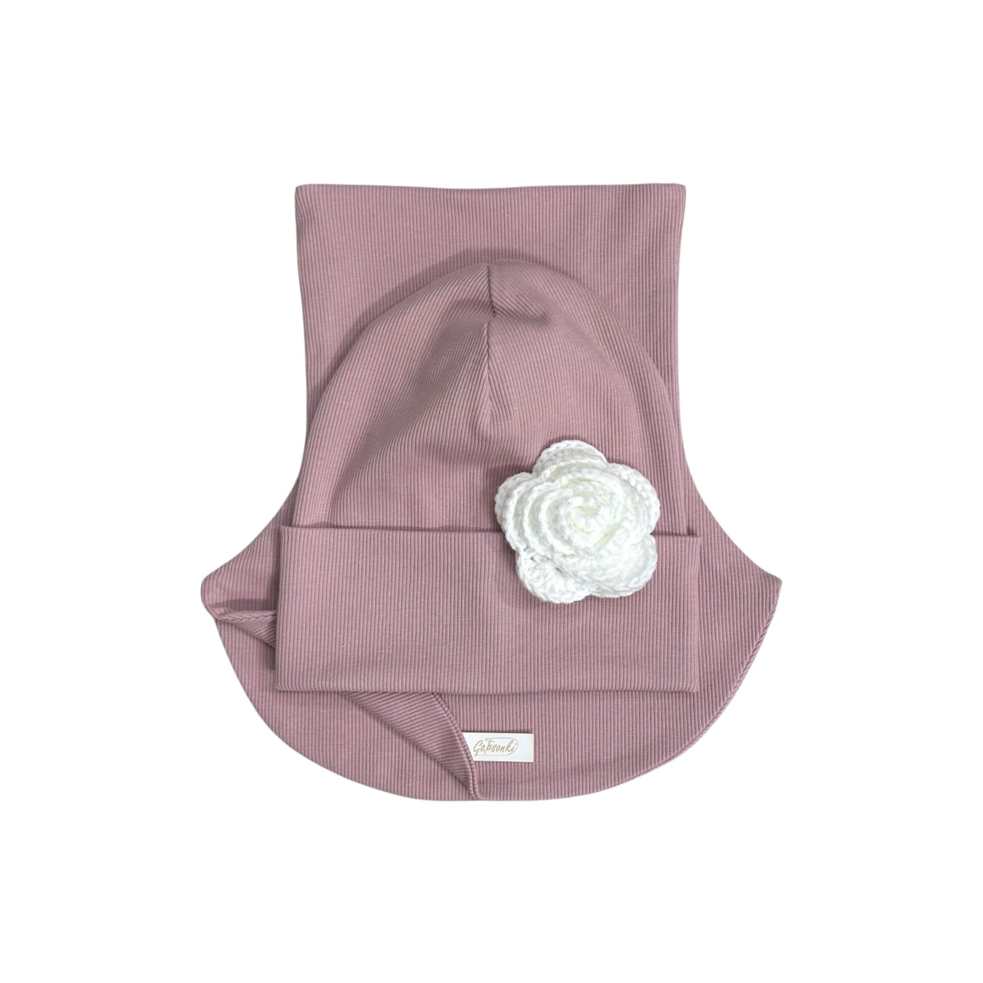 Czapka z różą | komino-golf | zestaw jesienny | dziewczęcy | Brudny róż