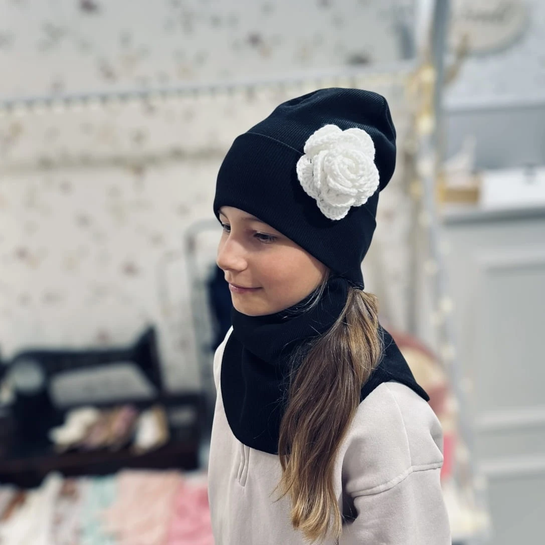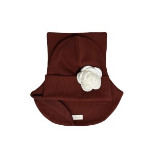 Czapka z różą | komino-golf | zestaw jesienny | dziewczęcy | Kasztanowy