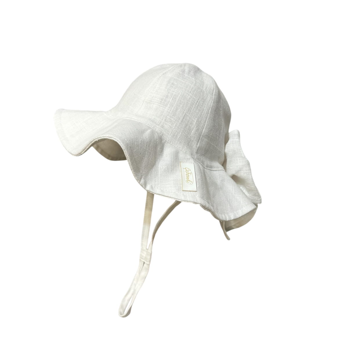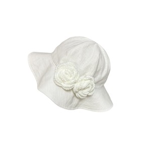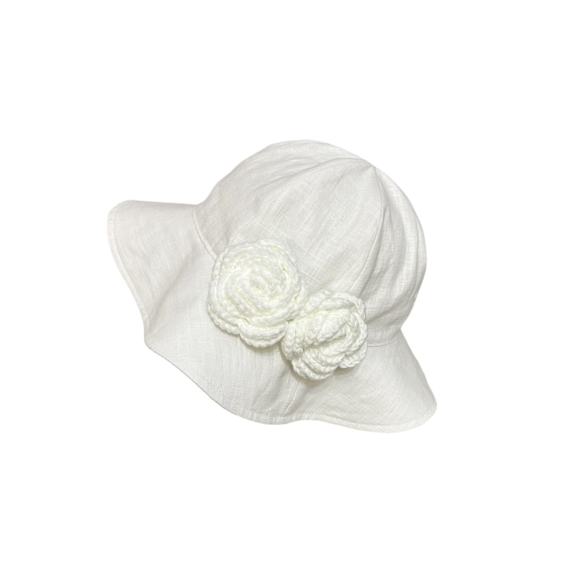 Kapelusz lniany róże | 100% len | dziewczęcy na lato | Biały