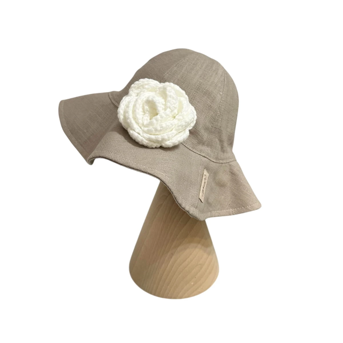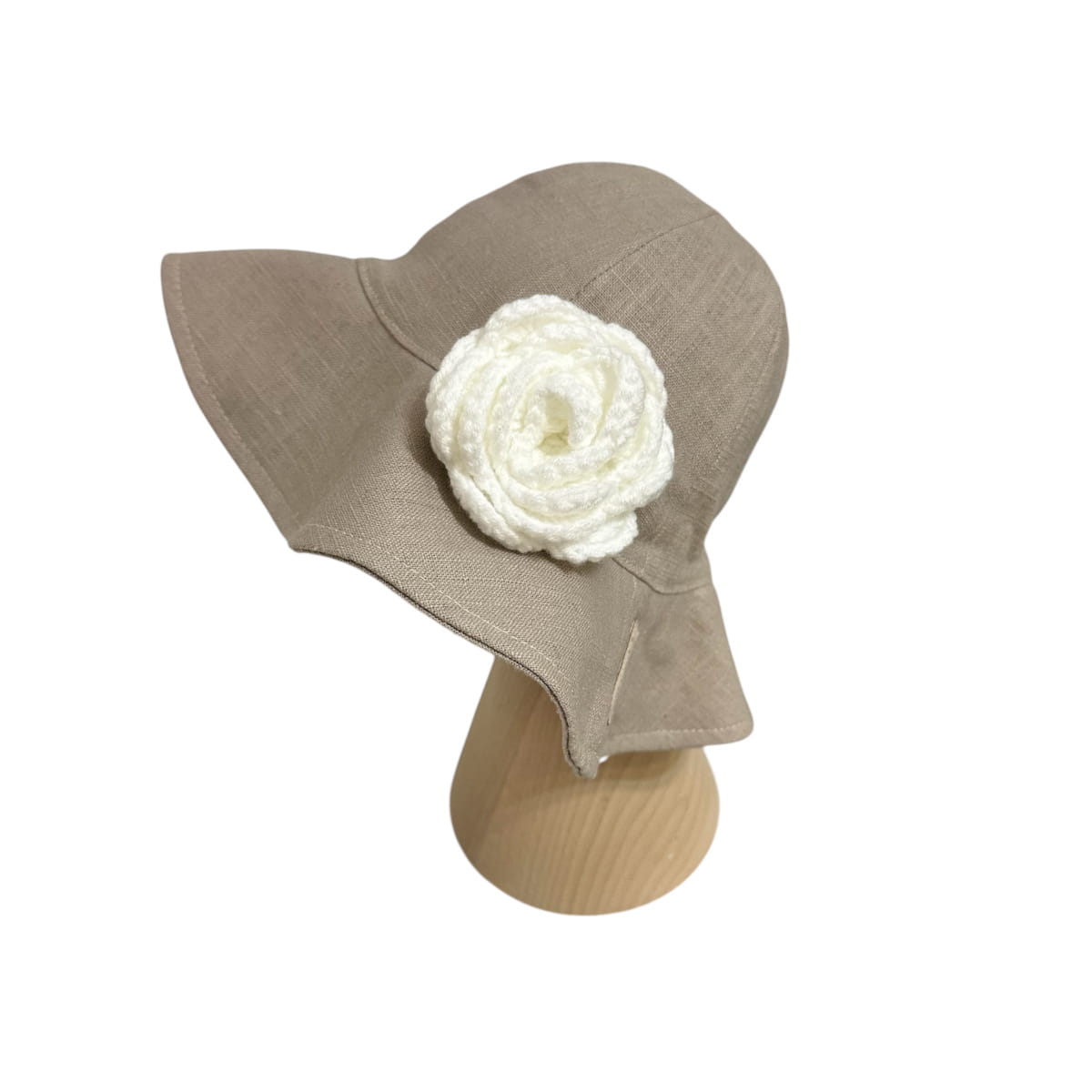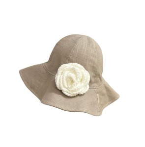 Kapelusz lniany z różą | 100% len | dziewczęcy na lato | Beżowo-szary