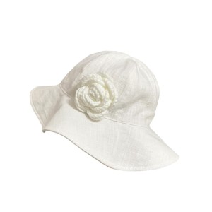 Kapelusz lniany z różą | 100% len | dziewczęcy na lato | Biały