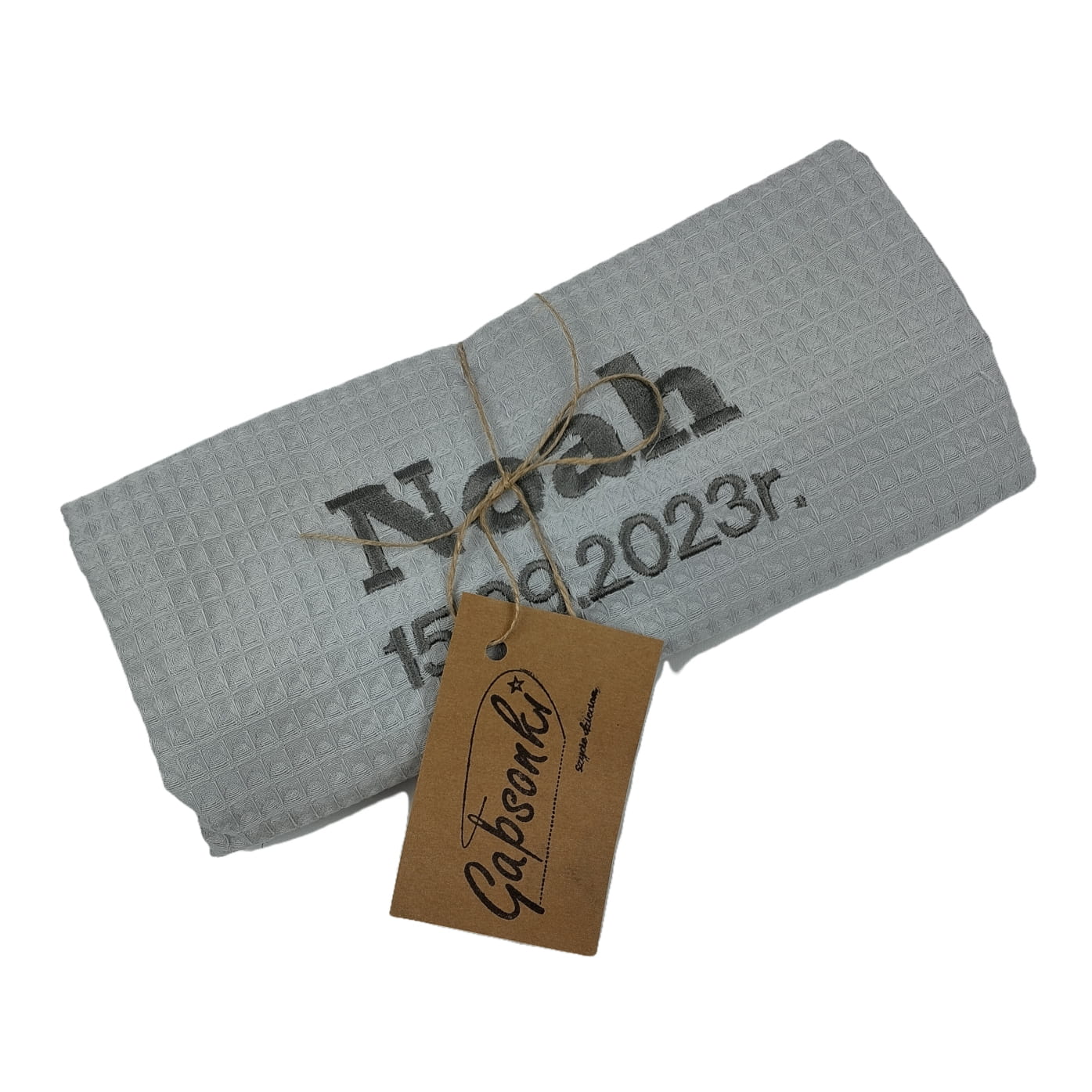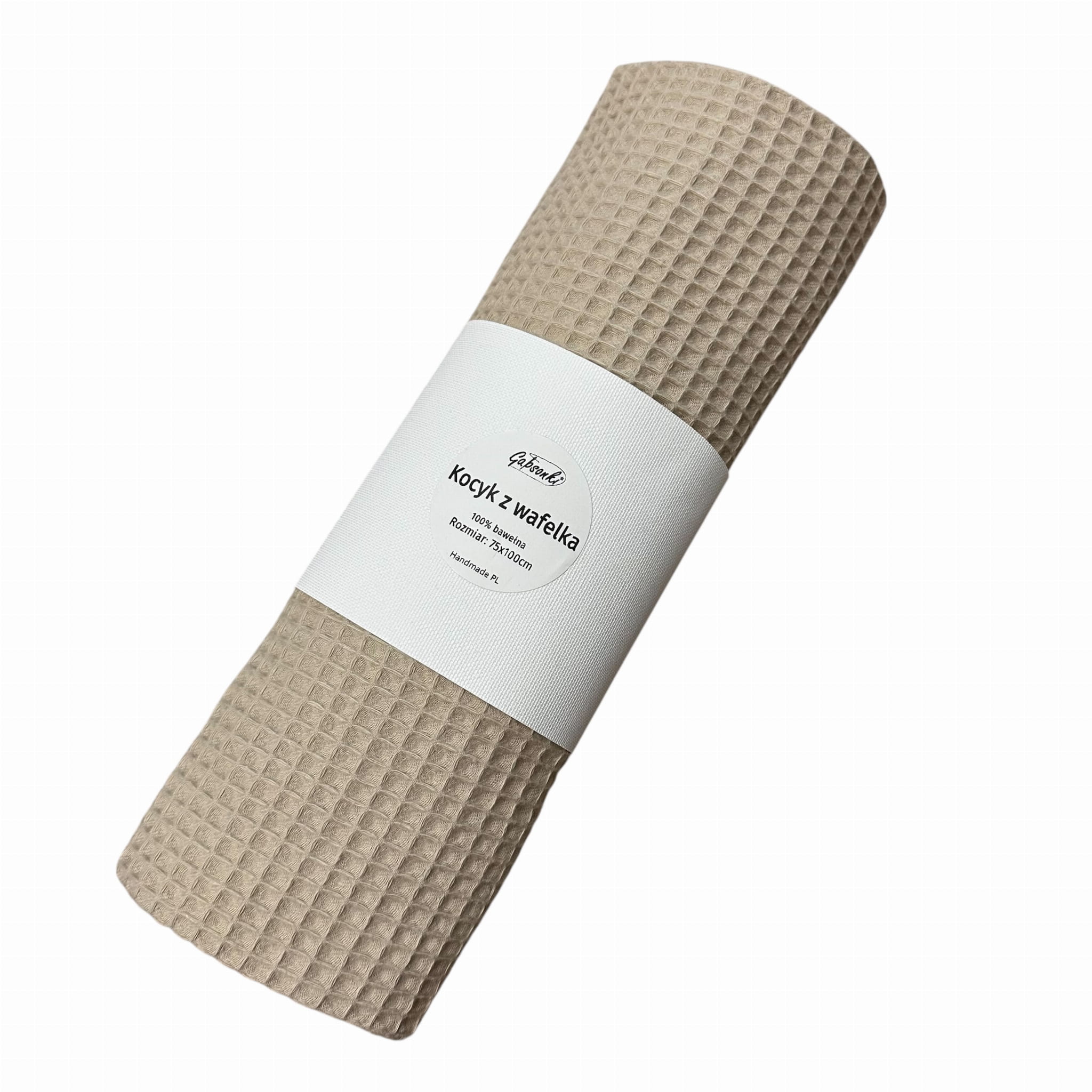 Kocyk bawełniany z wafelka | z personalizacją | piękny prezent dla chłopca i dziewczynki | Beż