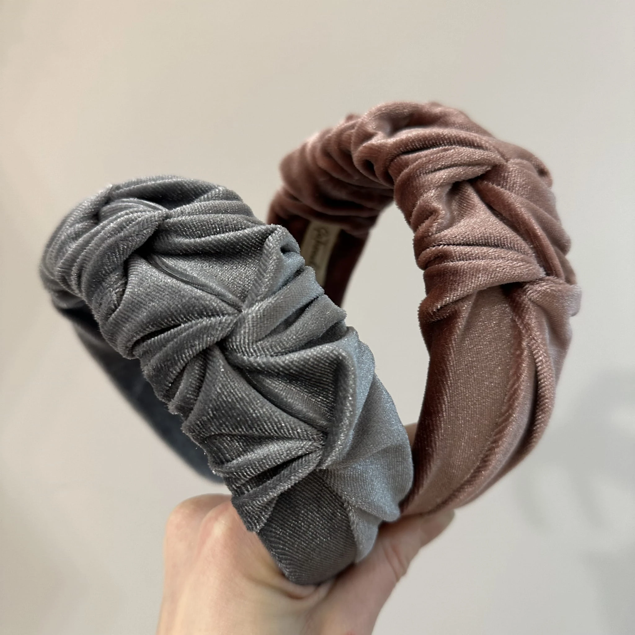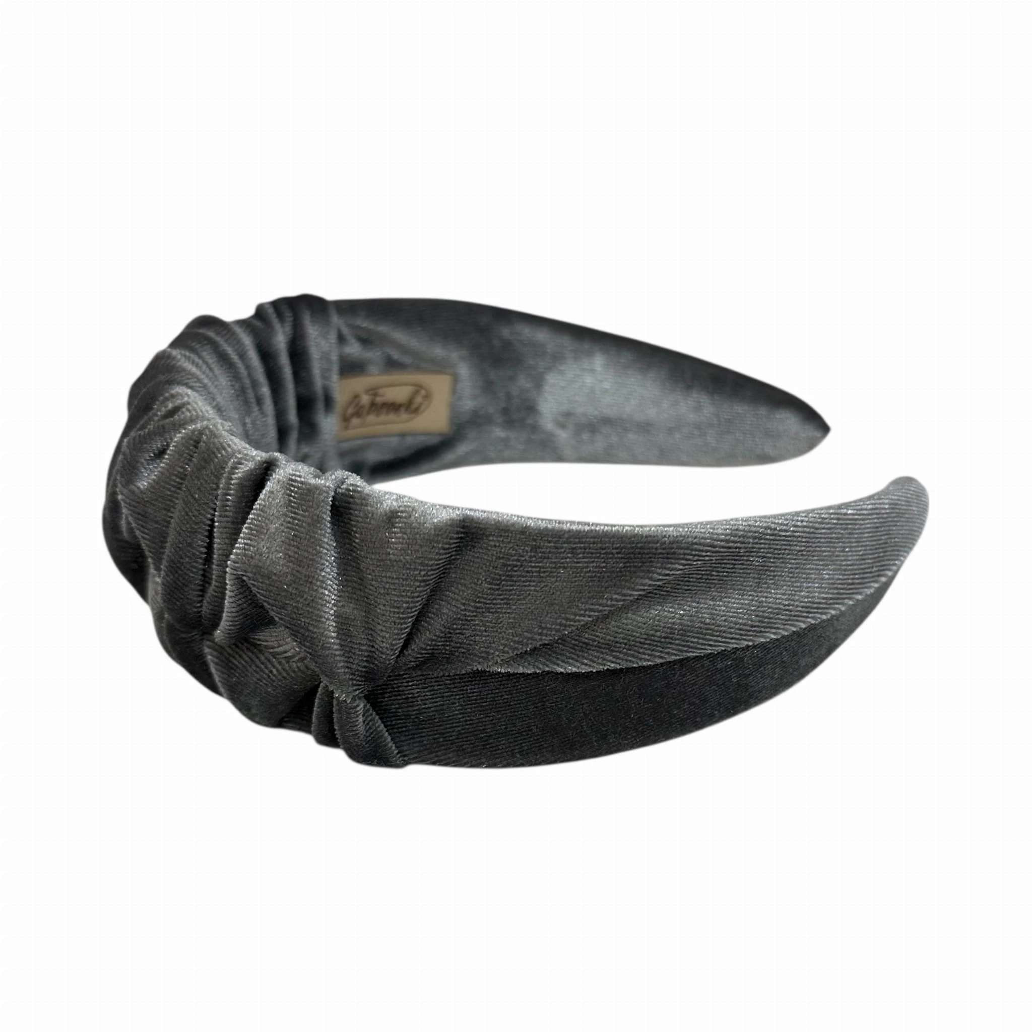 Opaska do włosów Marszczonka | Aksamit | Srebrna | dla dziewczynki i kobiety