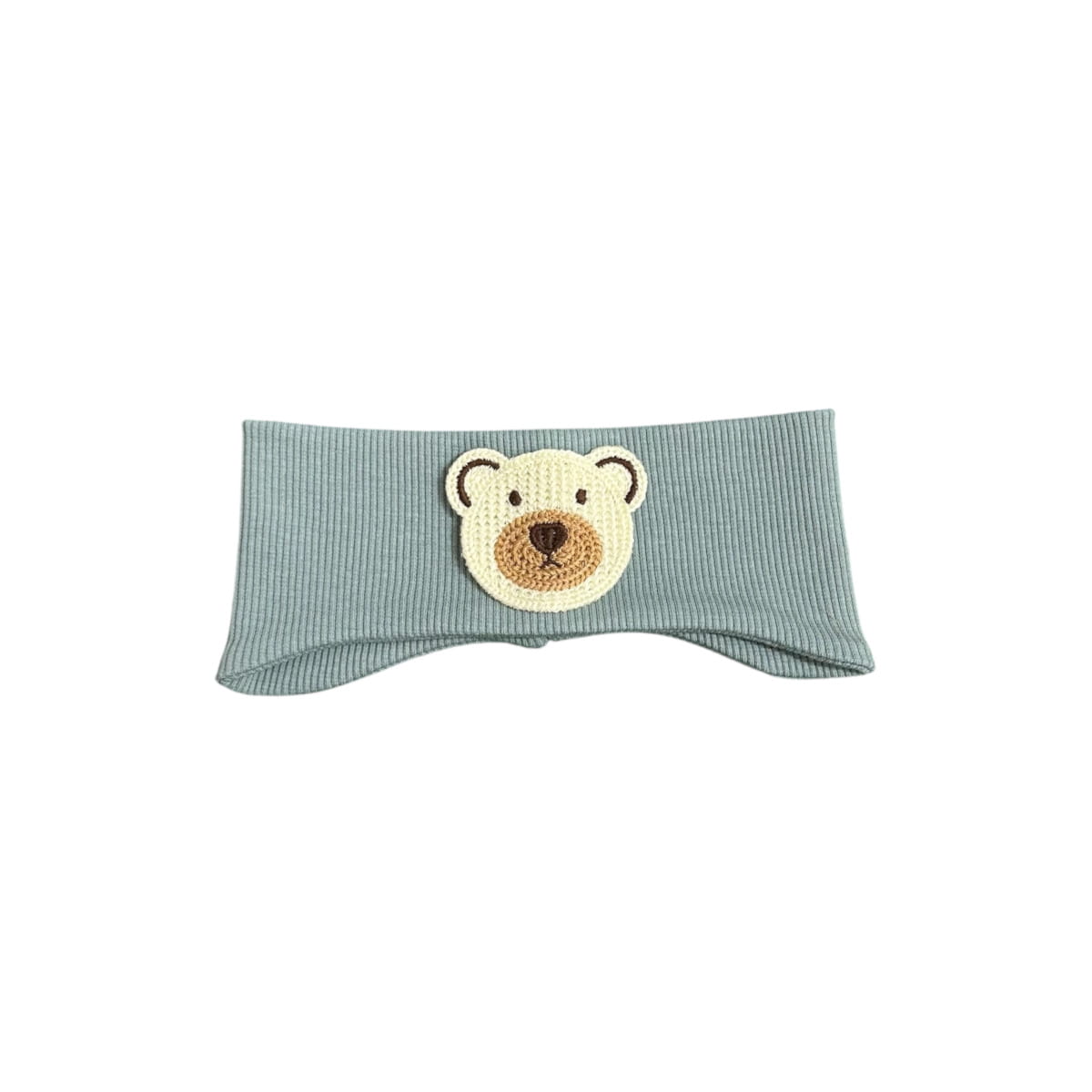 Opaska na głowę profilowana z misiem | chłopięca | Szaro-niebieski