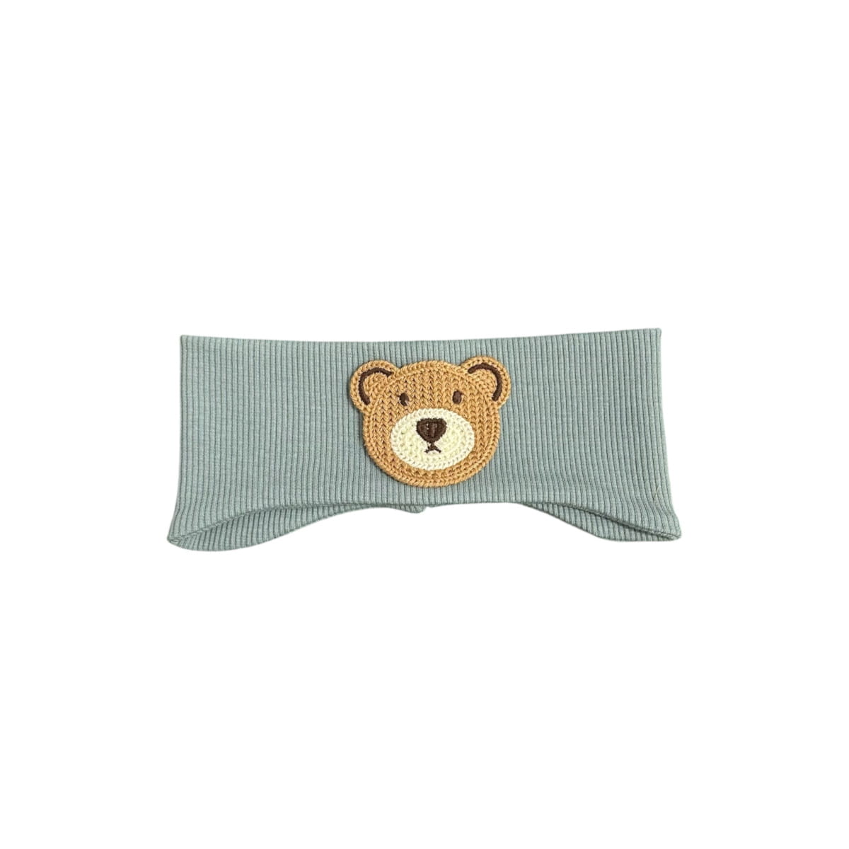 Opaska na głowę profilowana z misiem | chłopięca | Szaro-niebieski