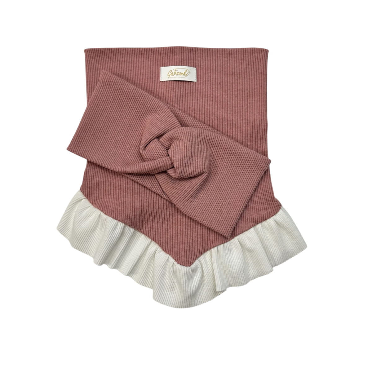 Komplet wiosenny opaska zaplatana + komino-chusta z falbanką w kolorze białym.