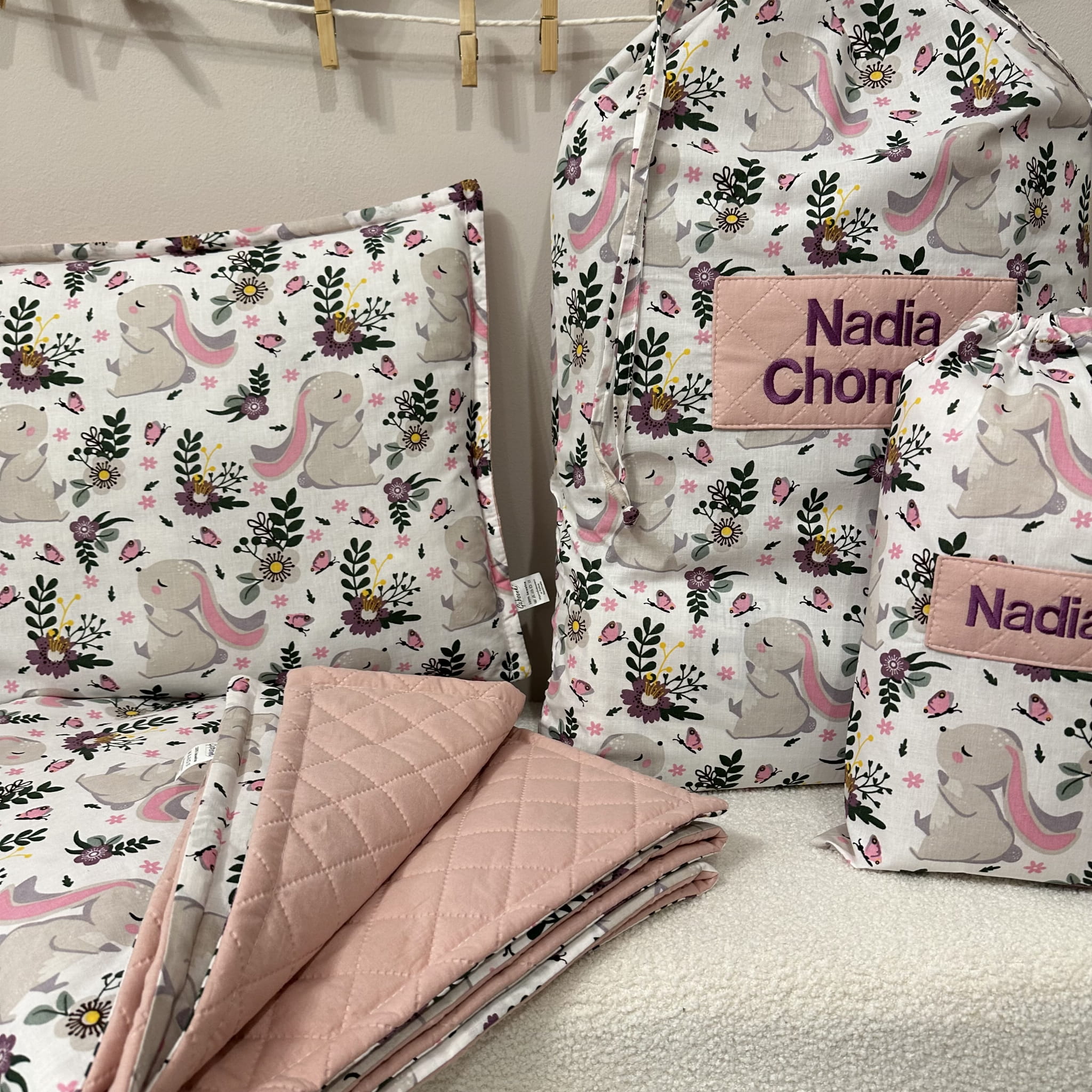 Pościel do przedszkola żłobka dla dziewczynki | Zajączki gałązki