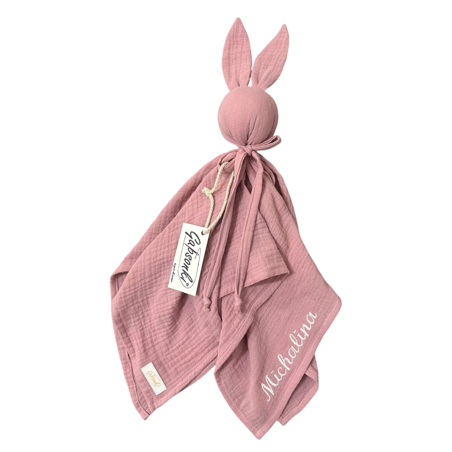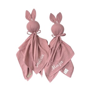 Przytulanka Królik dla niemowlaka | pieluszka muślinowa | Brudny róż