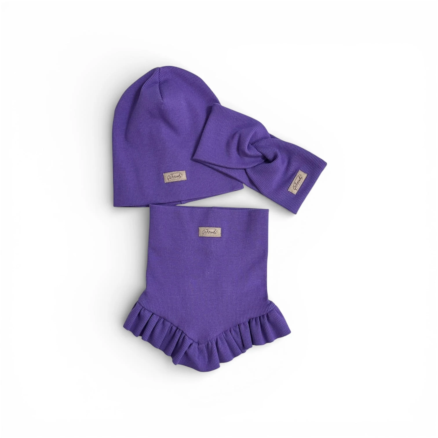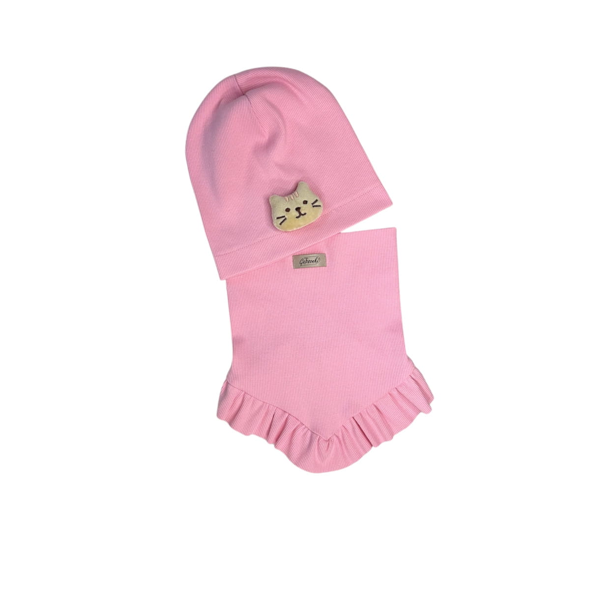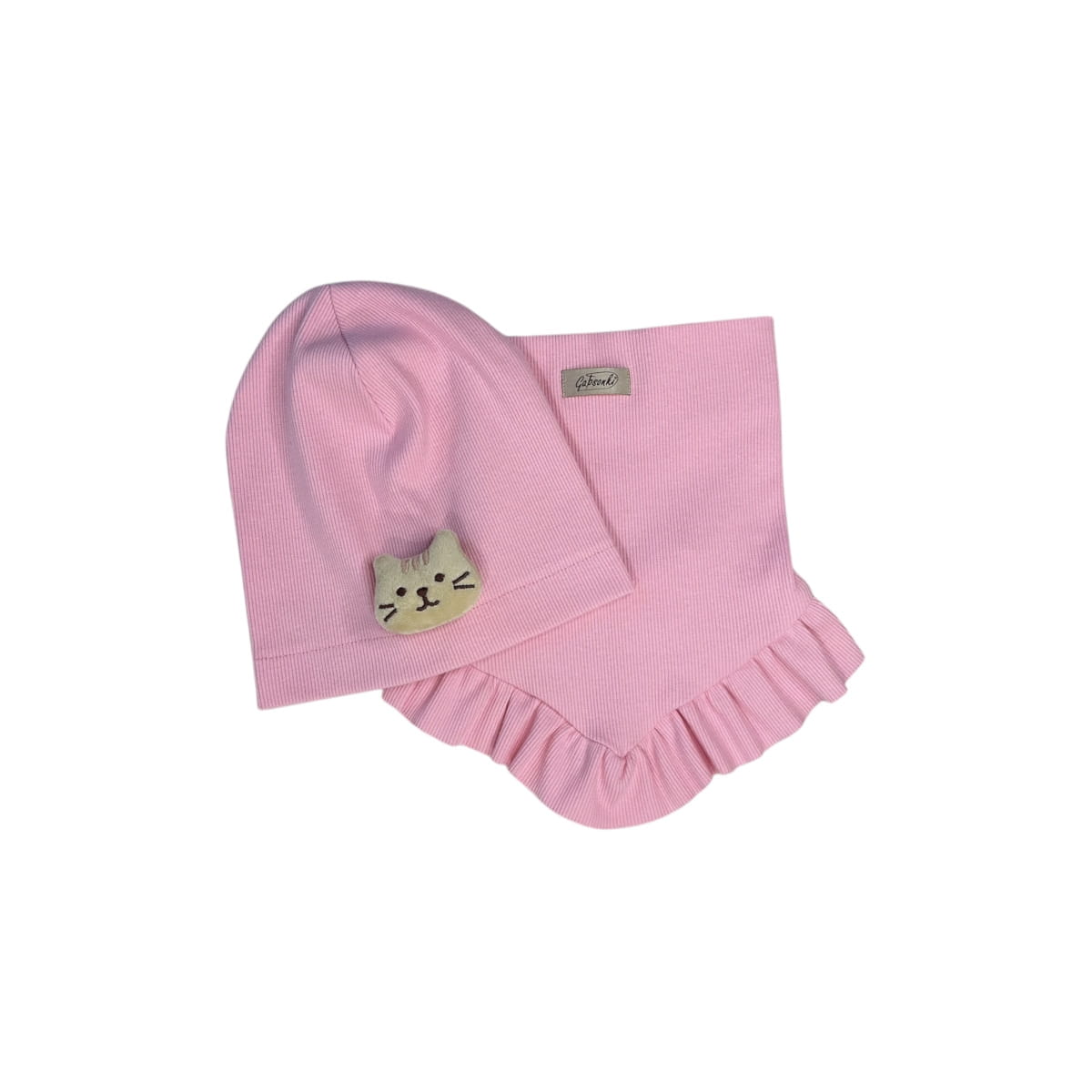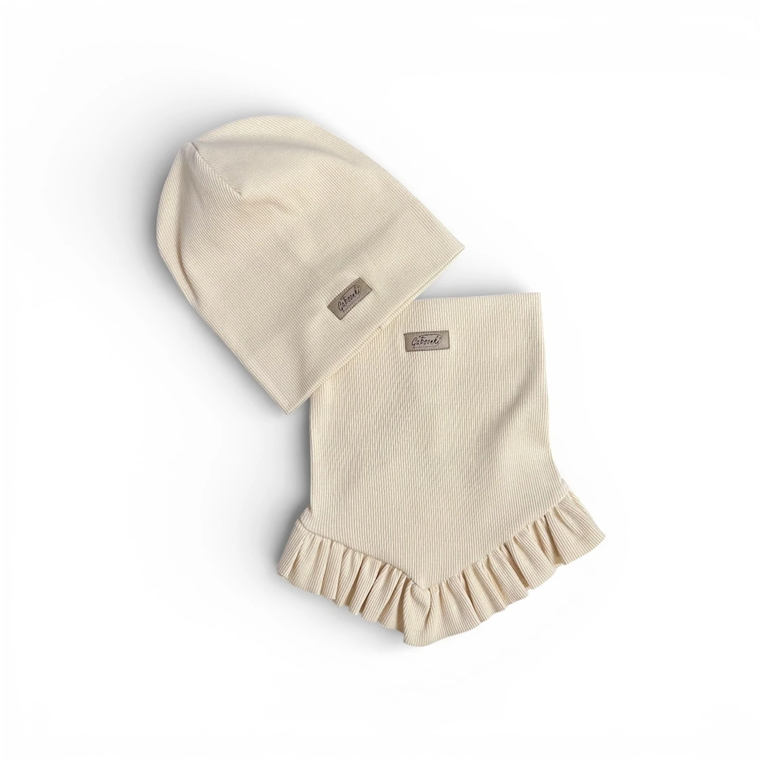 Komplet wiosenny czapka z dodatkiem + komino-chusta z falbanką.