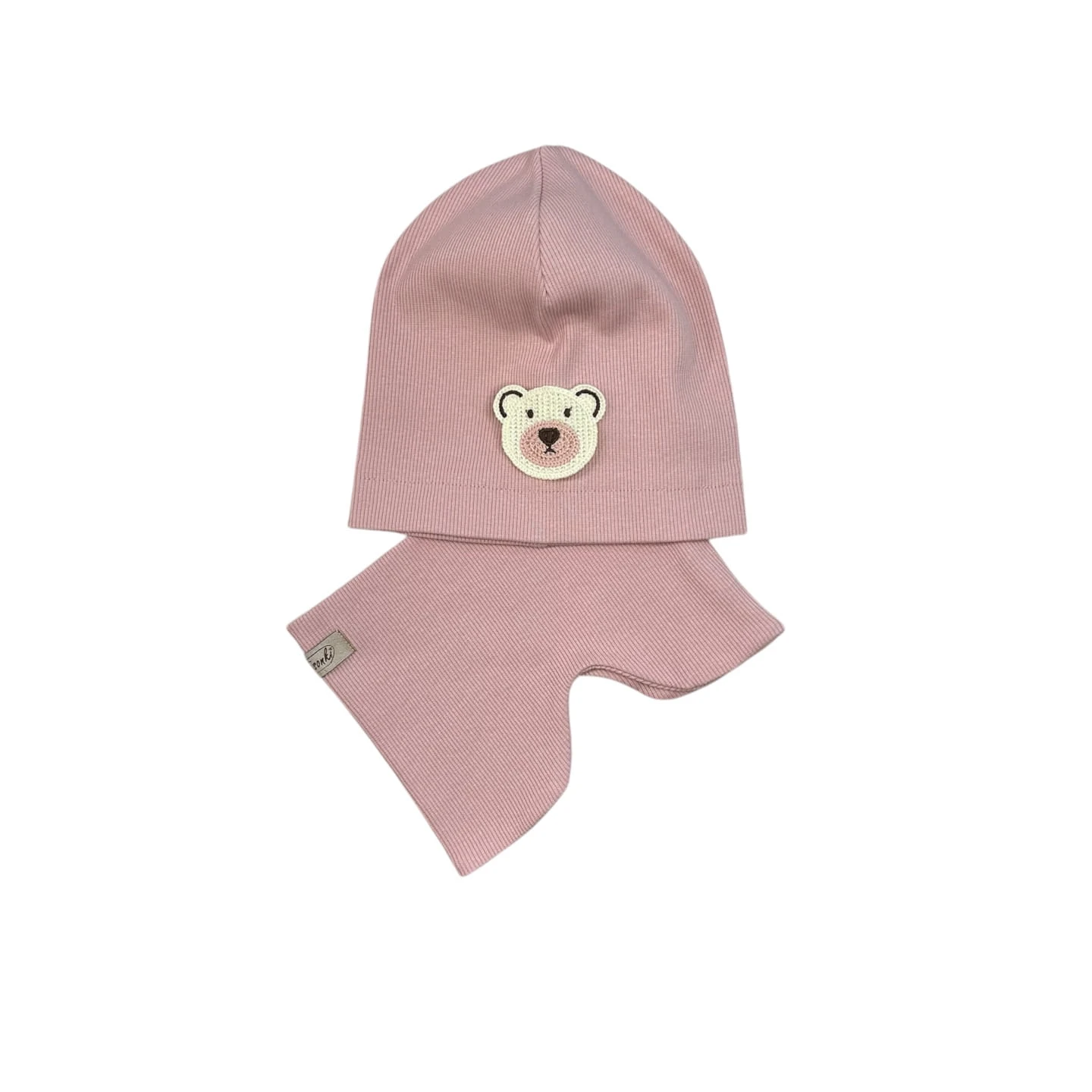 Zestaw czapka z Misiem Teddy + komin/golf Profi Brudny róż dziewczynka