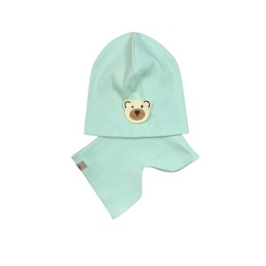 Zestaw czapka z Misiem Teddy + komin/golf Profi Mięta chłopięcy