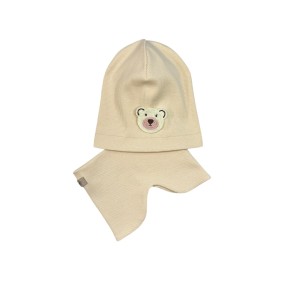 Zestaw czapka z Misiem Teddy + komin/golf Profi chłopięcy Krem