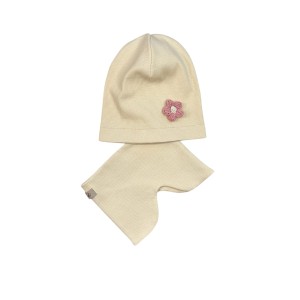 Zestaw czapka z kwiatuszkiem + komin/golf dziewczęcy wiosenny Krem
