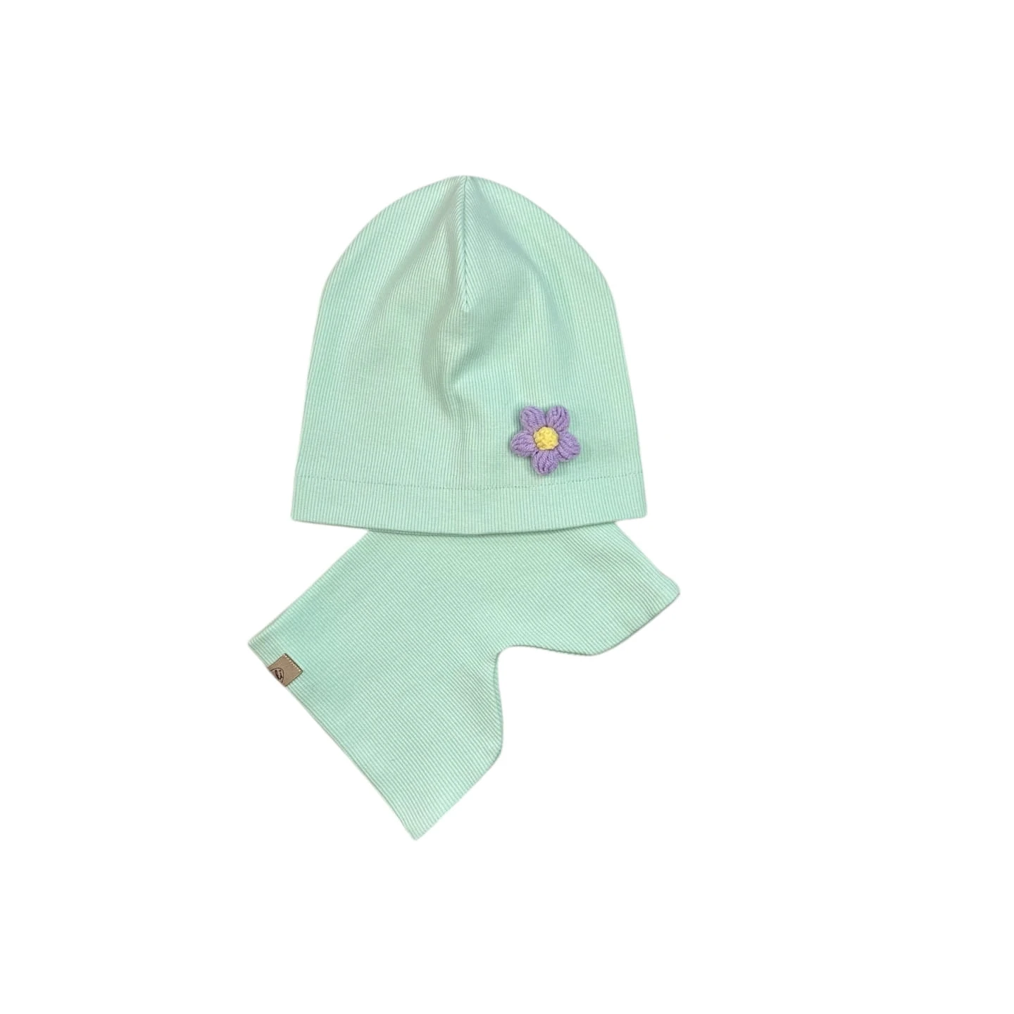 Zestaw czapka z kwiatuszkiem+komin/golf dziewczęcy wiosenny Mięta