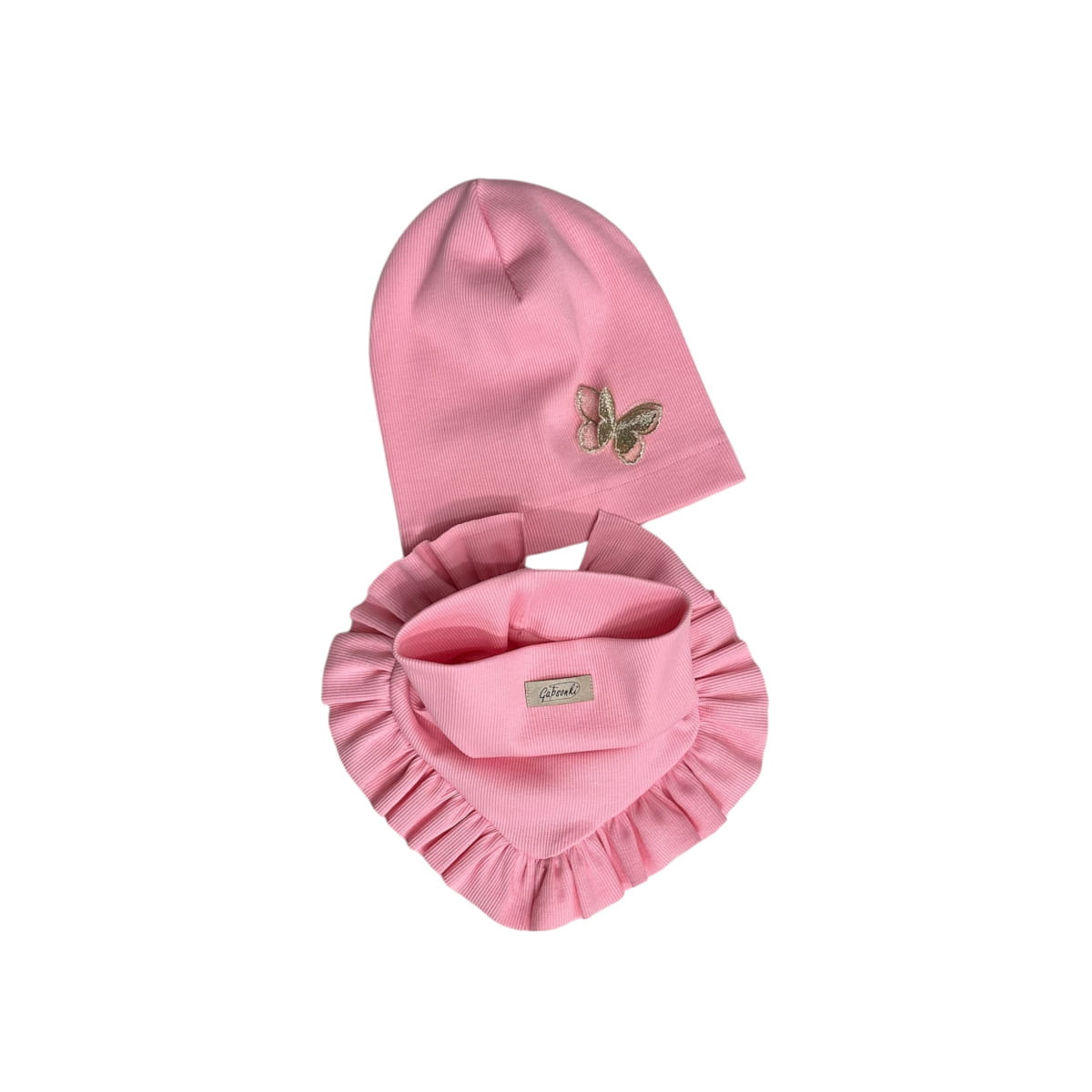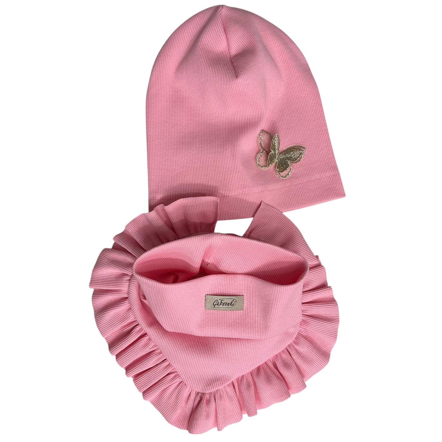 Zestaw czapka z motylkiem + komin-chusta dziewczęcy Cukierkowy