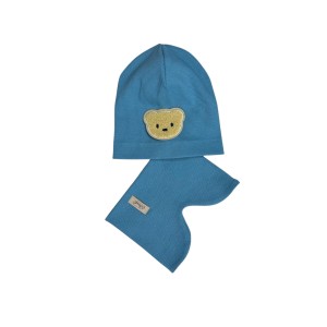 Zestaw prążkowany czapka z misiem+golf Profi Smerfowy wiosenny chłopięcy