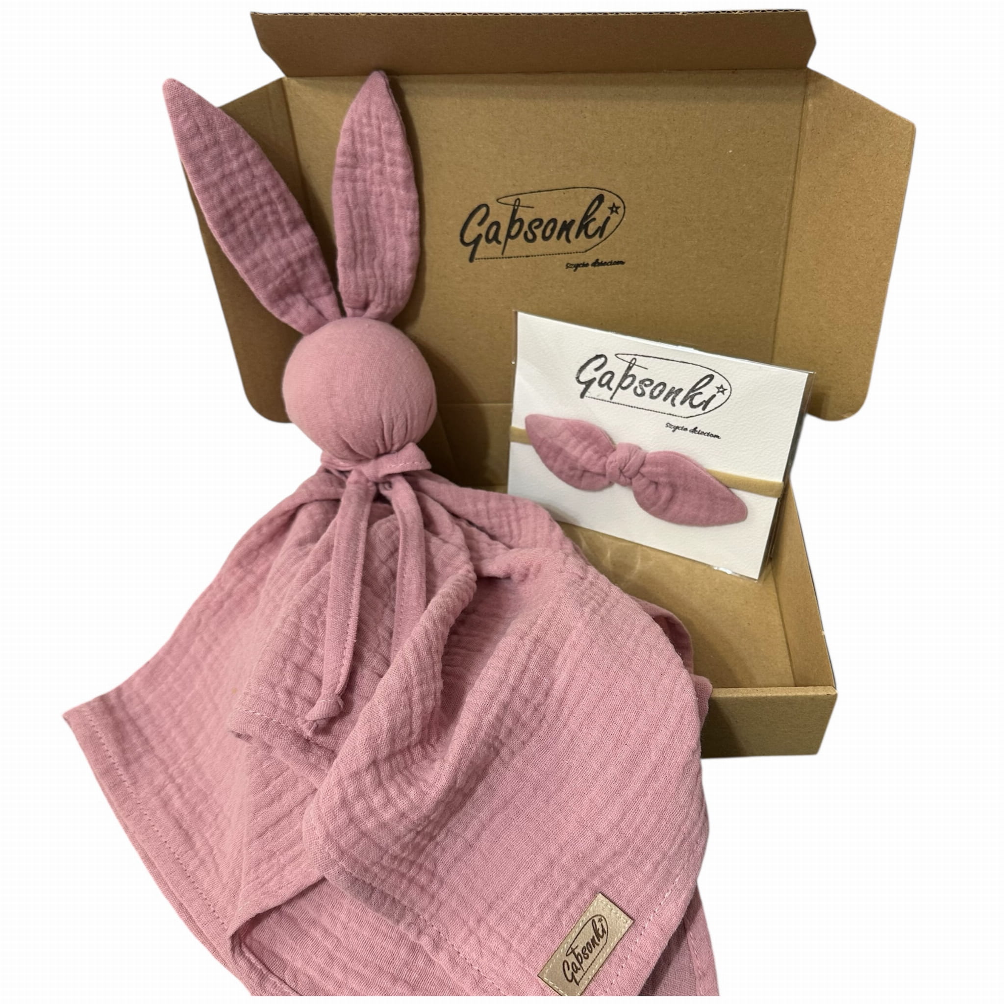 Zestaw prezentowy dla noworodka | Przytulanka i opaska bezuciskowa dla dziewczynki | Brudny róż