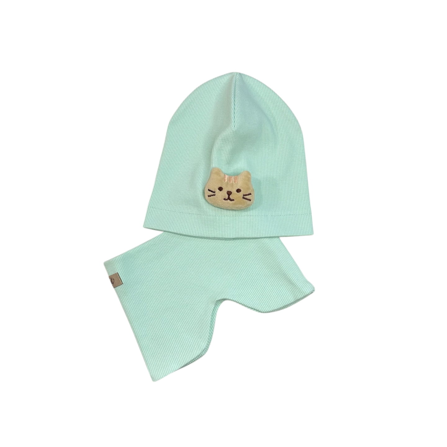 Zestaw wiosenny czapka z kotkiem+ komin/golf dziewczęcy Mięta