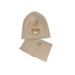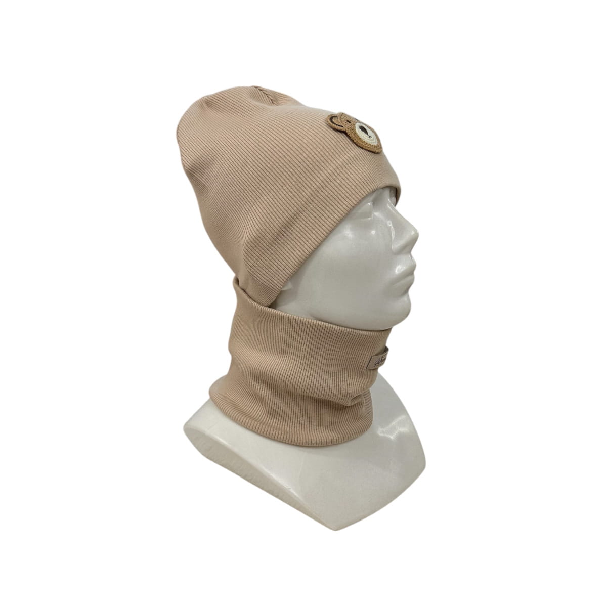 Zestaw wiosenny czapka z misiem + komin/golf chłopięcy Beż prążek