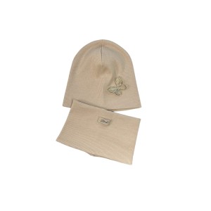 Zestaw wiosenny czapka z motylkiem + komin/golf dziewczęcy Beż prążek