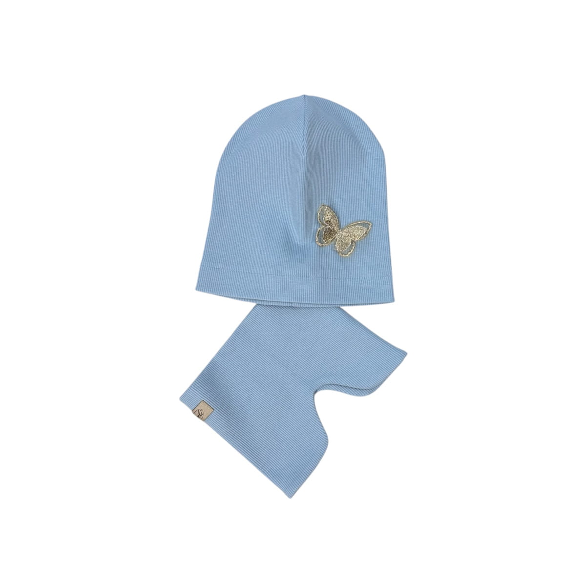Zestaw wiosenny czapka z motylkiem + komin/golf dziewczęcy Błękit