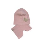 Zestaw wiosenny czapka z motylkiem + komin/golf dziewczęcy Brudny róż