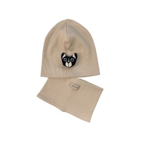Zestaw wiosenny czapka z pieskiem i golf/komin Beż dziecięcy